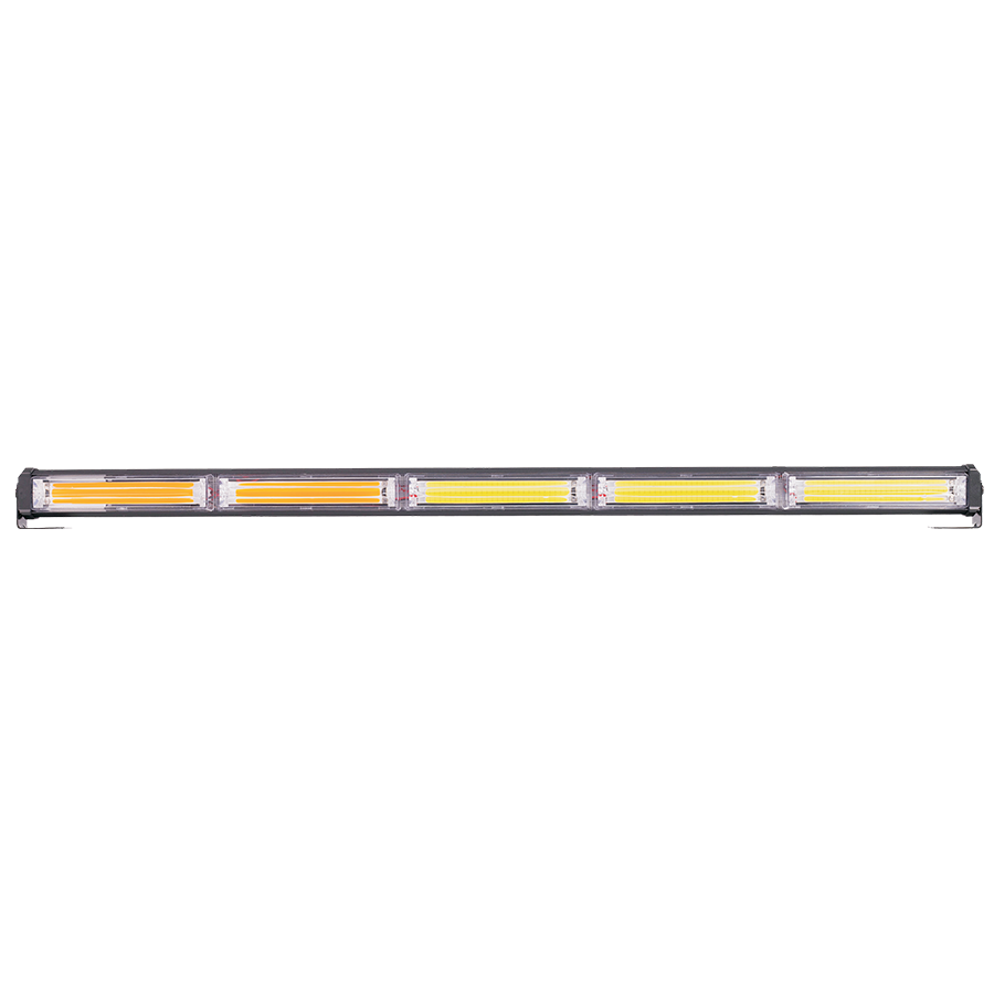 12-36V BLANCA Y AMBAR 9 BLOQUES COB 135W FLASH 10 FUNCIONES 1350X40X46MM INCLUYE TOMA A 12V CON INTERRUPTOR ON / OFF Y MANEJO DE FUNCIONES DESTELLANTES